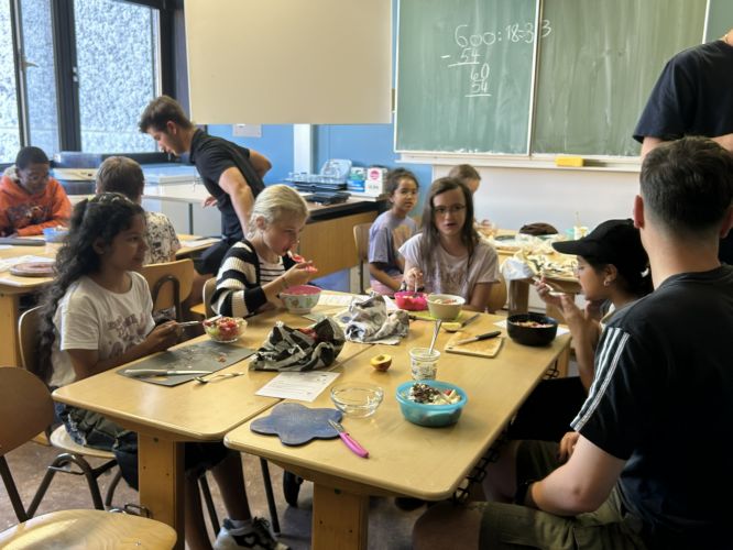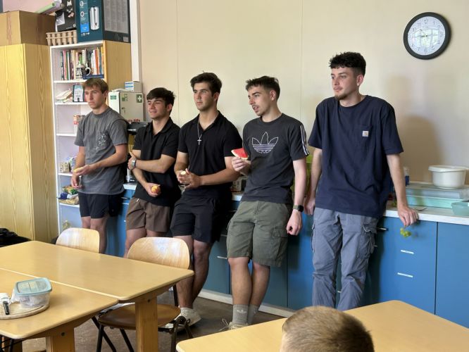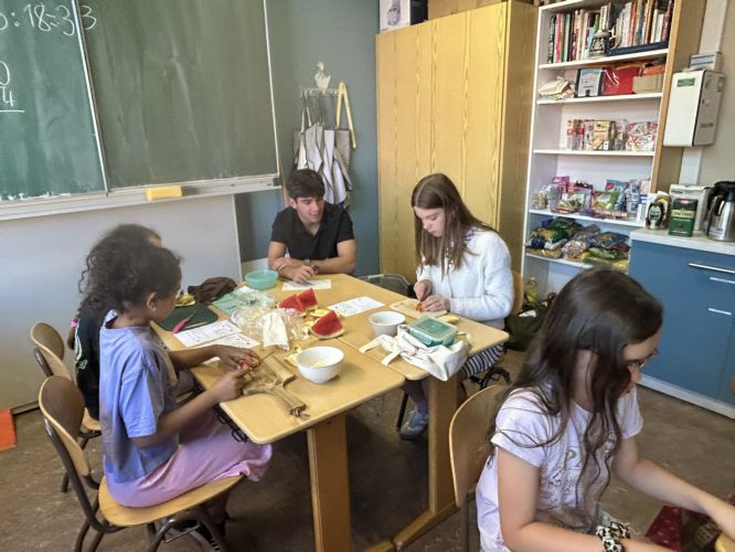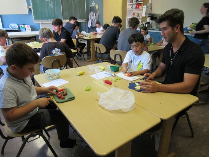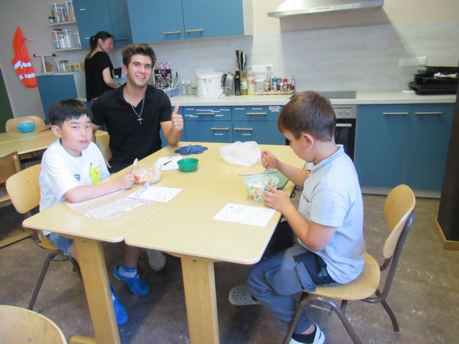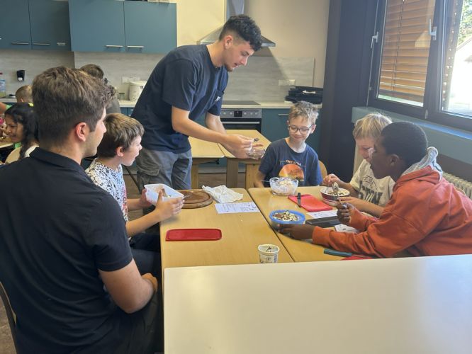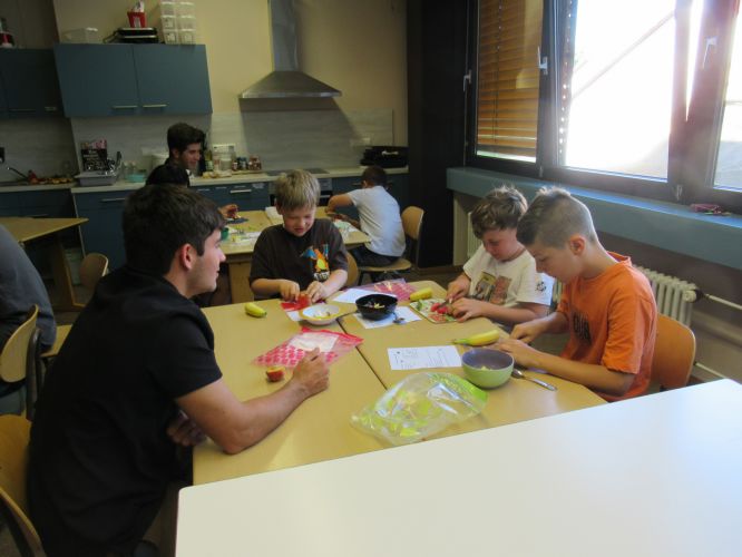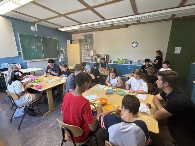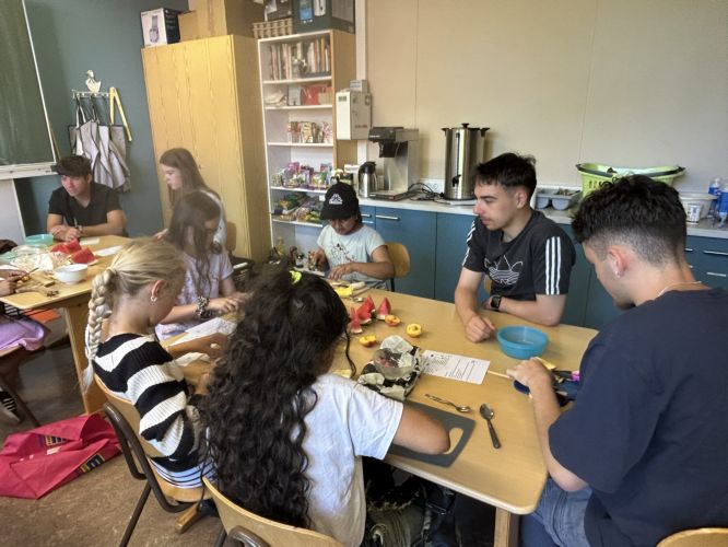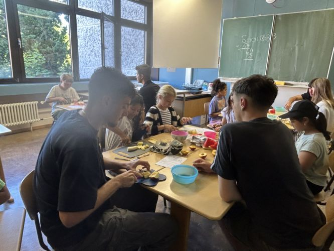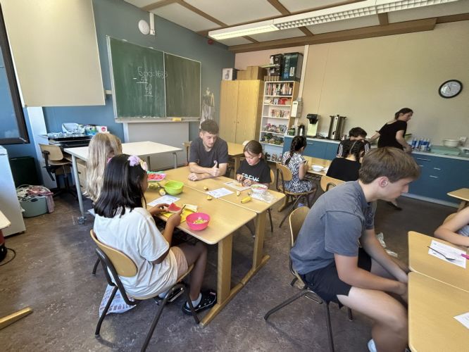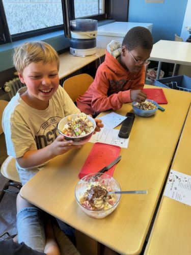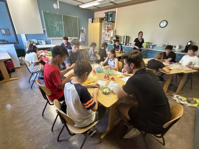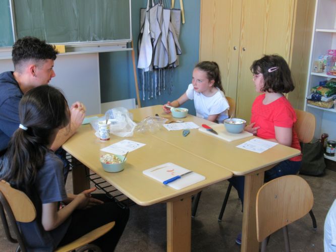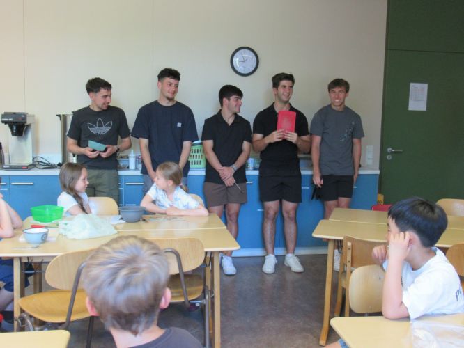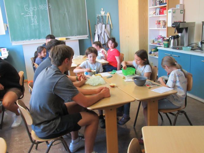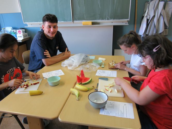 Echte Amerikaner waren zu Besuch im Englischunterricht der 3. und 4. Klasse. Fünf amerikanische Studenten, die zu Besuch in Deutschland waren, bereiteten in den Stunden mit den Kindern Obstsalat zu. Dabei wurde dabei nur englisch gesprochen und die Kinder konnten ihr Gelerntes unter Beweis stellen. Eine tolle Erfahrung!!