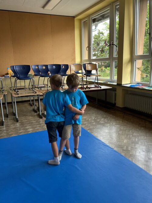 Letztes Schuljahr übten wir im Sportunterricht wieder fleißig, um möglichst viele Sportabzeichen zu erreichen. Dazu mussten wir im Bereich Kraft, Ausdauer, Schnelligkeit und Koordination verschiedenste Übungen absolvieren.Die Siegerehrung des Hofer Sportabzeichen-Wettbewerbs fand in den Ratsstuben des Rathauses statt. Bei der Preisübergabe durften Emely und Logan stellvertretend für unsere Schule 110 € Preisgeld in Empfang nehmen. Wir freuen uns schon auf die neuen Bälle, die wir damit anschaffen können.